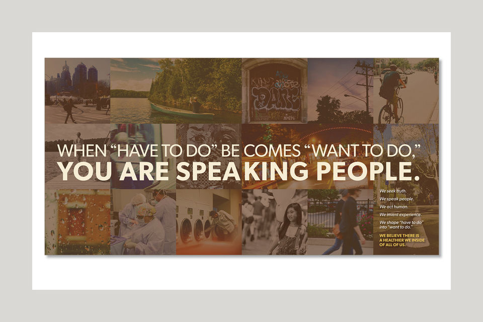 This book was the first reveal of the new company mantra: Speak People. The pages give a glimpse at how the agency "ticks" and why it strives for, and succeeds at, excellence in the healthcare industry. It starts, moves, and ends with people. People we call colleagues. People we call clients. And people we call audiences. It's about a genuine, honest understanding of the small things that connect us all as humans. Through that understanding, we tell better stories and live the mantra: Speak People.